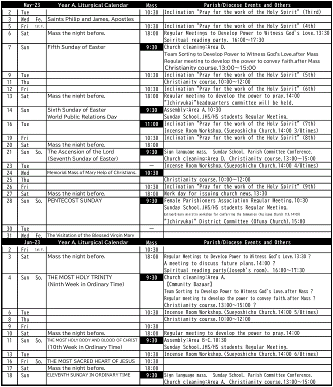 * Updated: the 1st Friday mass at May 5 is CANCELLED.